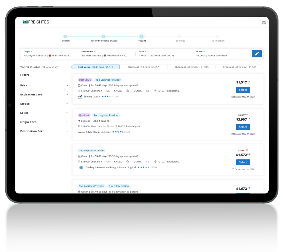 我们的免费国际货运报价计算器可提供准确的运费估算。 只需告诉我们您的货物信息,我们就会从全球最大的运费数据库中为您提供估价。 然后加入 Freightos,使用我们的运费计算器比较、预订和管理您即将进行的货运。